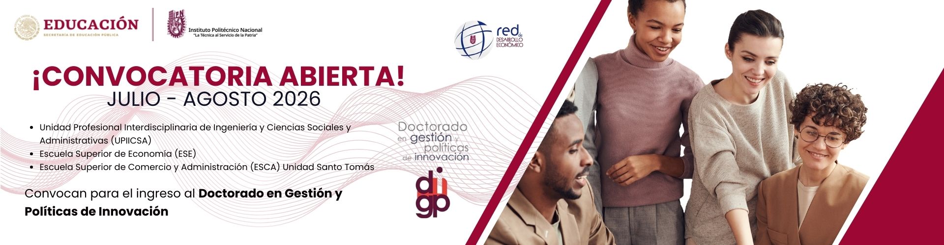 La Red de Desarrollo Económico del Instituto Politécnico Nacional, invitan a participar en su proceso de admisión del Doctorado en Gestión y Políticas de la Innovación.